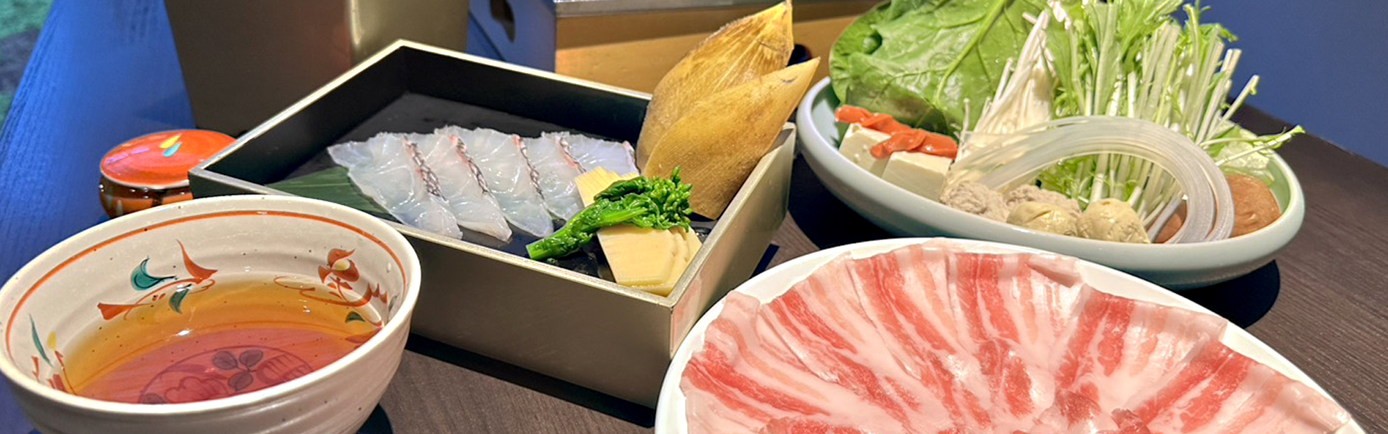 白金豚と桜鯛と筍のつゆしゃぶ【翡翠】ひすいコース(要予約)